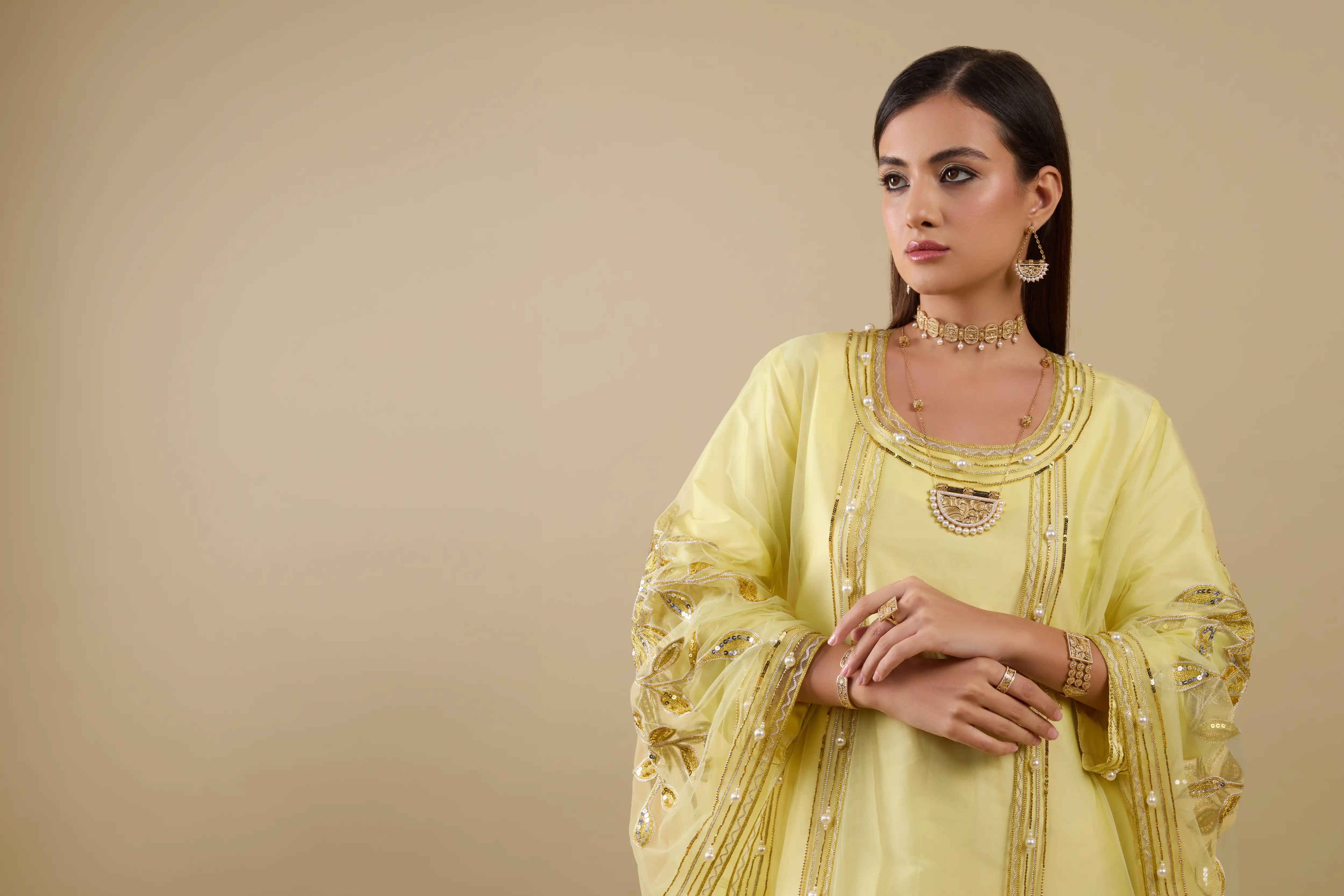 Necklace inspired in the Traditional Emirati Gold Jewellery, with an intricate pattern framed by a border set in brilliant cut diamonds.